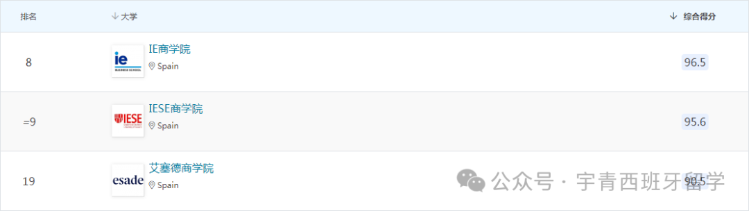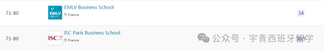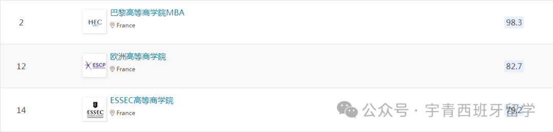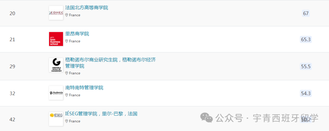 除了上述商学院外,西班牙、法国、意大利还有18所商学院进入全球前一百。