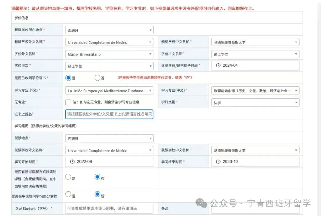 国(境)外学历学位认证是西班牙留学生毕业回国前必须办理的手续。旨在满足国(境)外学历学位证书和高等教育文凭获得者在中华人民共和国升学、就业及参加各类资格考试的实际需求。为中华人民共和国境内用人单位和招生单位鉴别国(境)外学历学位证书及高等教育文凭提供咨询服务和参考意见。教育部会为通过认证评估的文凭出具书面认证证明。
