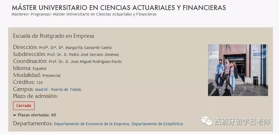 精算和金融科学硕士虽然是西班牙语授课,但是!但是!他的申请需要英语B2。专科生可以申请呦~尽量相关专业申请。