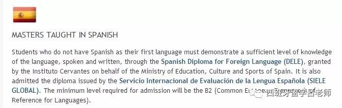 作为一个西班牙的大学,那么我么首先要题的语言要求便是西班牙语了。西班牙语的要求是需要有Dele或者Siele的B2水平,方可申请卡洛斯三世大学的研究生。这对很多同学来讲无疑是一件好事,因为Dele每次考试的时间相对于Siele考试的时间间隔较长,并且出分所要等待的时间也同样如此。所以现在想要去申请卡洛斯三世大学的同学,即便没有Dele成绩也不要着急,赶快报考Siele考试吧!争取早点拿到成绩开始申请进入下一阶段的学习。