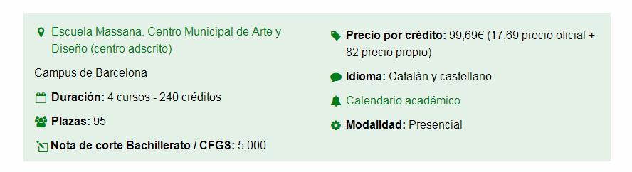 今天为大家主要介绍一下把资质优势专业之一——艺术与人文领域 本科西语英语研究 学生生从英语和西语的课程中获得了语言,文学和文化方面的扎实训练。 专业设置 -在公共和私人机构中制作教学材料。 -翻译和口译;公司,出版社,图书馆和语言部门的多语种机构交流。 -语言技术的应用。 -旅游,公共关系和国际关系。 -与杂志和文化增刊合作,对社论中的文化任务进行文化评估和管理,公司合作与协调,基金会或公共机构中的文化活动。 - 学术研究 本科西语与加泰语研究 向学生提供了加泰语和西语,文学和文化方面的扎实培训。专业将加泰罗尼亚语和西班牙语联系融合在一起,这有助于在欧盟国家从事与语言和多语制相关的工作。来自加泰罗尼亚和西班牙的文化调解和进入商界的高素质专业人士的访问,与旅游活动和文化交流的关系等。 一个月后,您可以在语言学,比较文学或第三语言(德语,意大利语,加莱茨语或埃斯卡尔语)中进行选择。 课程设置 -在公共和私人机构中制作教学材料。 -翻译和口译;公司,出版社,图书馆和语言部门的多语种机构交流。 -语言技术的应用。 -旅游,公共关系和国际关系。 -与杂志和文化增刊合作,对社论中的文化任务进行文化评估和管理,并协调和计划公司,基金会或公共机构中的文化活动。 - 学术研究。 本科西班牙语言与文学研究 这是培训准备在各个领域工作的语言学家和语言学家的专业,这些领域包括西班牙语的教学,研究,出版,社论或传播管理。 您将专门研究:西班牙语,西班牙语文学,文学理论和比较文学,通俗语言学,西班牙裔美国人研究和盖纳尔研究。 主要职业领域 公立或私立教育中心、成人教育中心、文字编辑(制作,改正,翻译,阐述字典)、研究(大学,语言学和语言学研究所,图书馆和图书馆)。 文化管理、信息社交(在新闻,广播和电视中进行写作和协作以及为互联网公司写作内容)、语言服务。 语言规范化、语言产业和新技术的应用。 官硕 西班牙语,西班牙文学和西班牙语作为外语 该硕士学位是西班牙大学中唯一提供西班牙语,西班牙文学和西班牙语作为外语概览的课程。并获得了AQU授予的质量认证以及对教学与研究之间交互作用的其他机构的认证。 硕士学位教师在每个研究团队的专业化领域都有公认的国际声誉,并且在泛西班牙裔的不同领域开发项目,您可以在其中进行整合。 专业 硕士学位的目的是为西班牙语国家培训专业人员,拥有该硕士学位的毕业生的就业机会很多,而且非常多样化,如:西班牙语和西班牙文学教学、文化管理、各种编辑任务:校对和样式,编辑,制作,构图,布局、编写字典,教学手册和其他教学工具、新闻或广告写作、笔译和口译、口头和书面、商业和文学、文学批评、工作室等的管理。 本科艺术与设计 该系在造型艺术和设计方面的培训拥有八十多年的经验,并享有很高的声望。 在专业领域中,艺术创作与设计领域之间的联系已牢固确立。艺术和设计学位可满足对多才多艺和适应能力强的专业人员的需求,他们可以适应各种性质的创作。 在该学位课程中,学生将创造与生产相关联,并同时学习广泛的知识:他将学会以集体的方式创造,交流和理解复杂的问题。学生将掌握批判,沟通和创造的技能,使他们能够提出创新性和竞争性的建议。 学生将熟悉艺术和设计的历史,并发展各种视觉和视听学科的技能。该学位的教育程度使您可以熟悉新技术或文化管理或艺术批评等领域。并且,它使您可以专注于应用艺术,艺术,对象和空间设计,视觉传达和视觉故事讲述。 专业构造 -研究产品设计,传播,室内设计,展览设计,品牌。 -建筑公司,设计和创新咨询公司,研发中心,杂志和出版商。 -版式设计,企业形象和形象设计,社论设计,信息设计。 -图形插图(书籍,出版社,广告应用程序),漫画和图形小说,交互式动画(视频游戏,应用程序,交互式书籍...)。 官硕 艺术与设计研究 艺术与设计研究硕士课程主要教授与技能相关的能力,以研究,思考,重新思考,探讨和撰写关于艺术和设计理论与实践的问题的广义知识 课程结构: 1.研究创作过程 2.创意美食和食品设计 3.感官知觉,意义和互动的过程 4.环境记忆 5.连接设计,数据和接口的可视化 实践 艺术与设计研究硕士课程允许实现学术以外的实践。实习必须与学习领域相关,并且必须由学生提出。