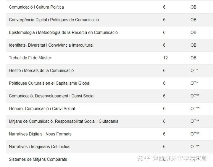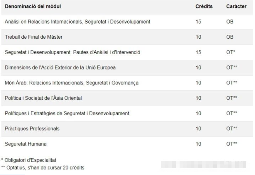 我们以巴塞罗那自治大学的国际关系和公共管理专业为例来看一下它的课程设置